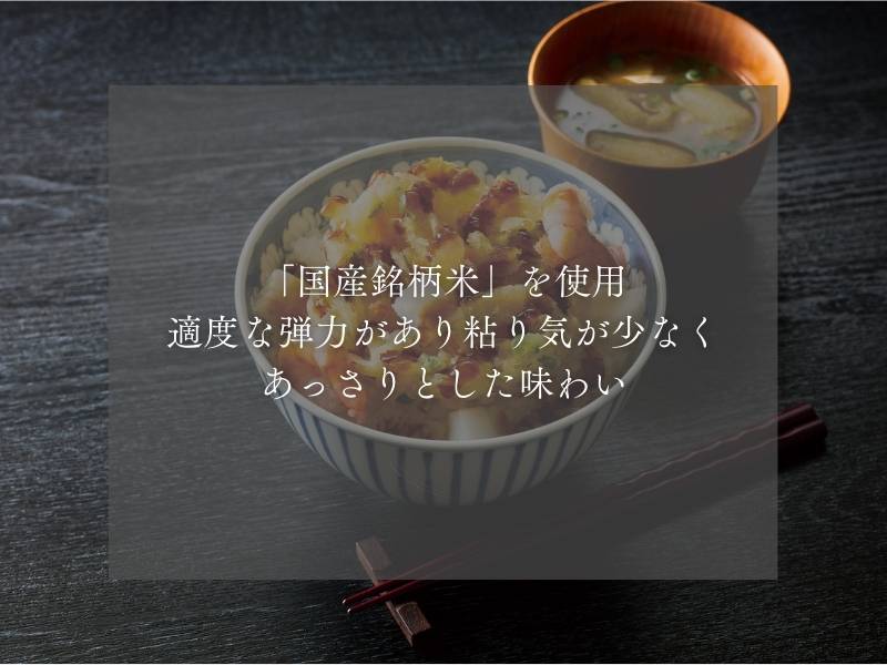 | 原材料 | 白飯〔うるち米(国産)〕、かき揚げ、ボイルえび、たれ(水あめ、しょうゆ、発酵調味料、砂糖、かつおエキス、食塩、たん白加水分解物、えびエキス、酵母エキス、寒天)、ボイルいか/増粘剤(加工でん粉、キサンタン)、pH調整剤、加工でん粉、調味料(アミノ酸)、着色料(カラメル、カロチン)、ダイズ多糖類、トレハロース、膨張剤、グリセリン脂肪酸エステル |