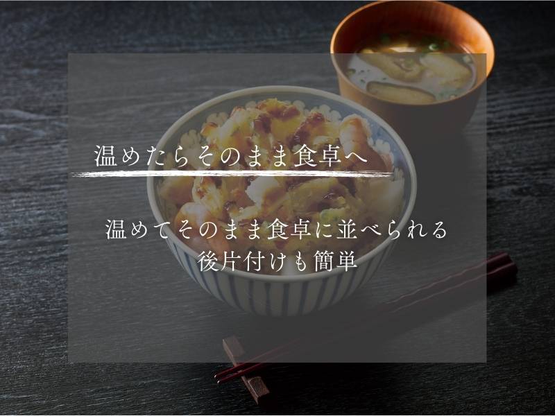 電子レンジで袋を少しカットし、500Wでわずか6分温めるだけで完成するので、手軽に本格的な天丼をお召し上がりいただけます。食べ応え抜群の贅沢な一杯で、日常の食卓をちょっとしたご褒美タイムに変えてみませんか?