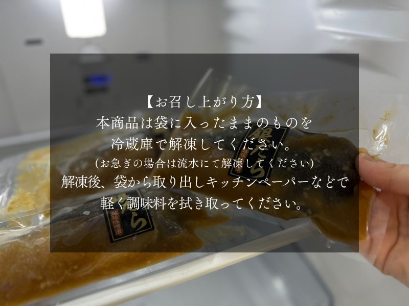 | 原材料 | 銀だら(アメリカ産)、味噌、発酵調味料、ぶどう糖果糖液糖、食塩/トレハロース |