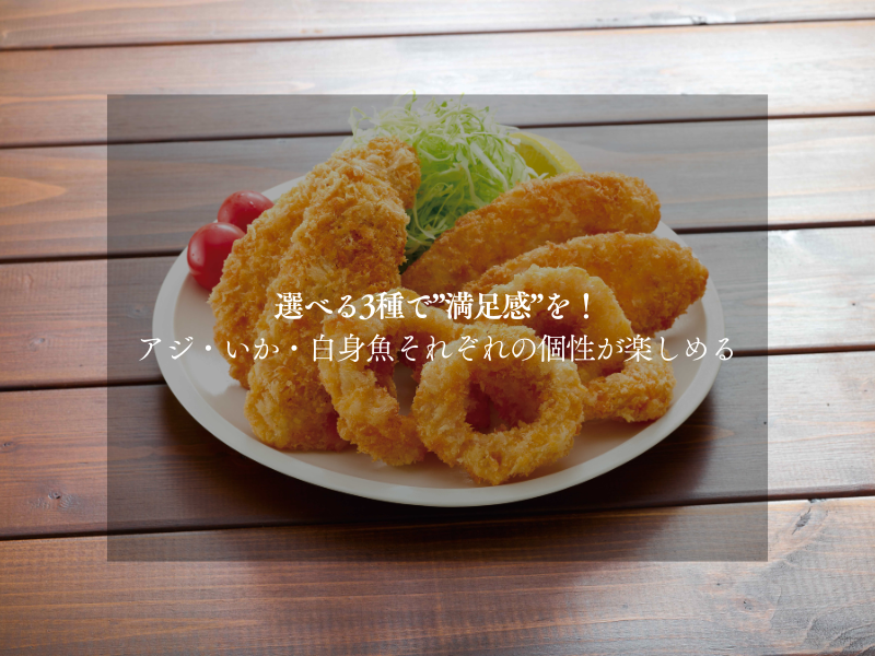 (あじフライ2枚・いかリング80g・白身魚フライ2枚)選べる3種で”満足感”を!